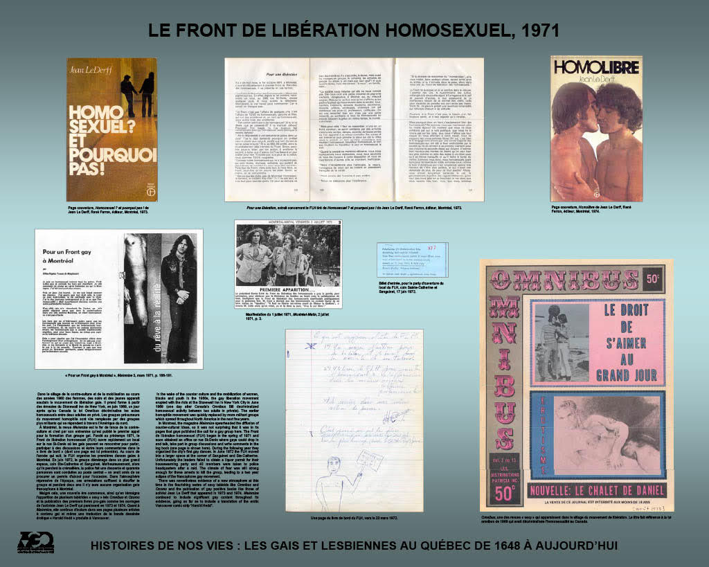 - Montreal experienced much activism as part of this movement which included the emergence of Le Front de Libération Homosexual (FLH) in 1971. That organisation, though, closed after a police raid in 1972.