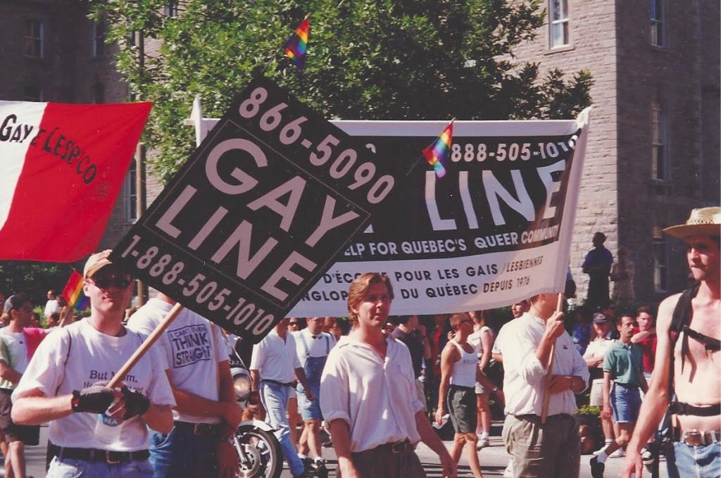 - But by July 1994, Gay Line was finally able to secure a desk and a phone in the evenings in the CCGLM/Montreal LGBTQ+ Community Centre. At that time, the CCGLM was located in Marché St. Jacques, which is now the Super C on rue Atateken.